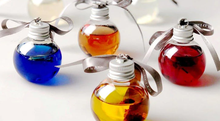50ml Gingle Bells Butterfly Pea Flower Gin bauble of 50ml pour from the big bottle